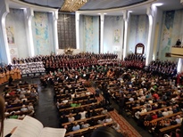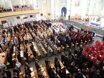 visi bijām vienoti Svētajā Misē – katrs koris bija savos tērpos, un mēs
